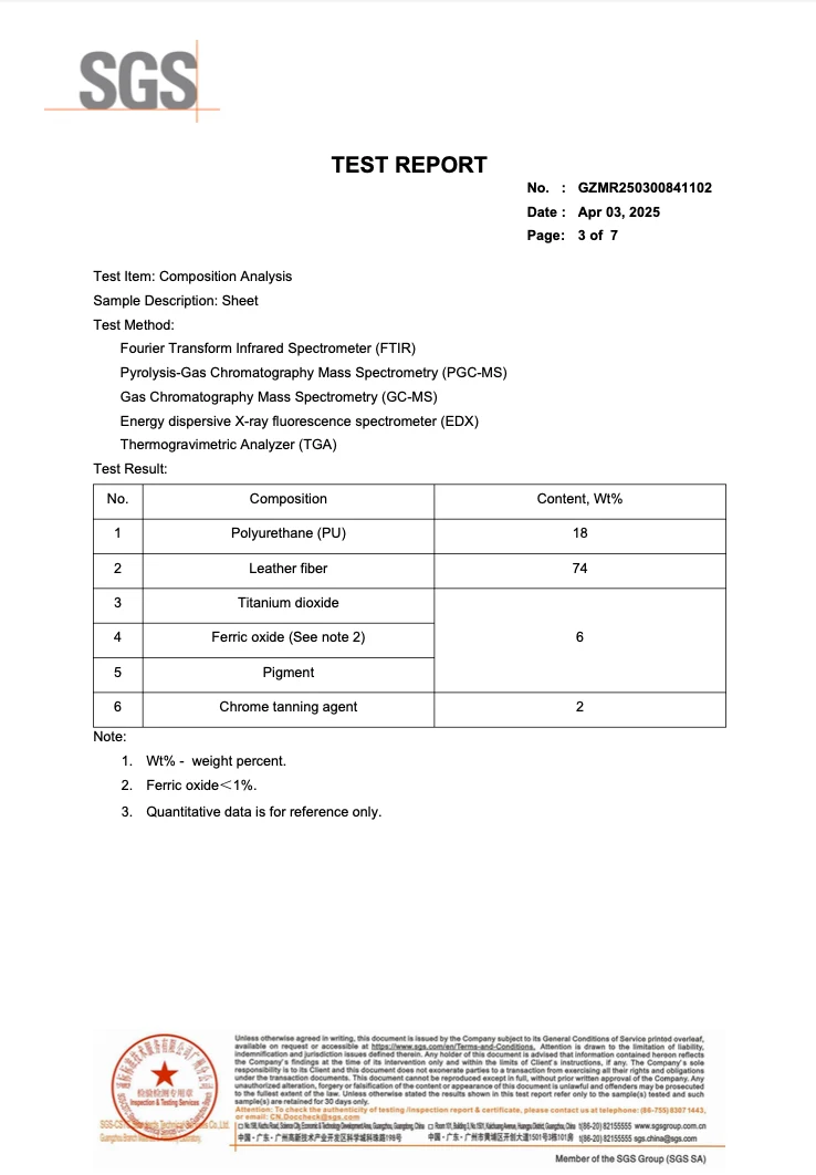 รับประกันเนื้อหา 70%+ เครื่องหนัง: เรารับประกันได้ว่าผลิตภัณฑ์ของเรามีเนื้อหาหนังแท้ 70% โดยการทดสอบ SGS โดยเฉพาะที่มาจากการตัดหนังที่ถูกทิ้ง ด้วยเทคโนโลยีการประมวลผลซ้ำขั้นสูงเราเปลี่ยนขยะนี้เป็นวัสดุระดับพรีเมี่ยมเพื่อให้ได้รูปแบบการผลิตแบบวงกลมอย่างเต็มที่